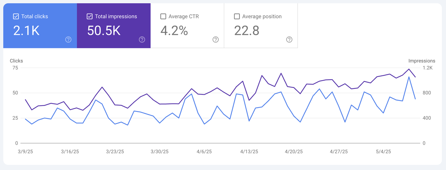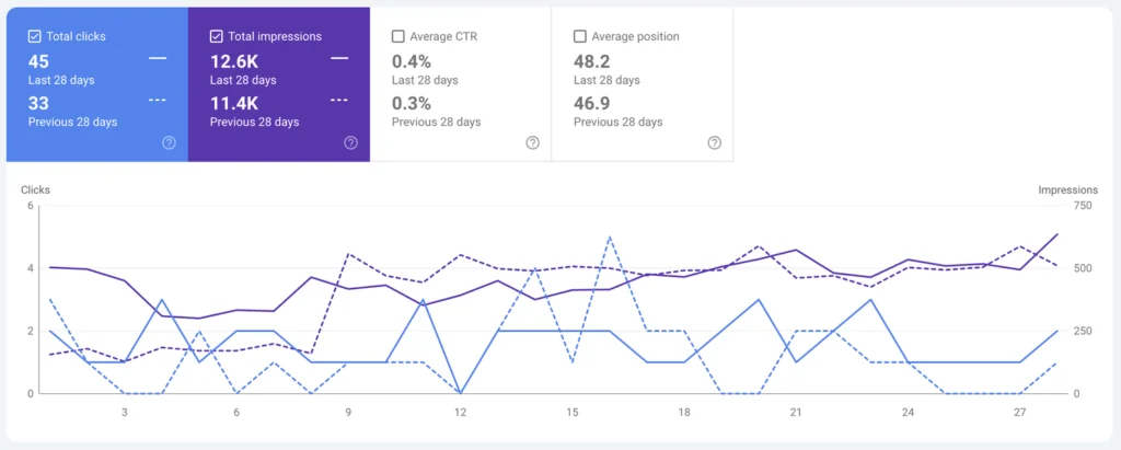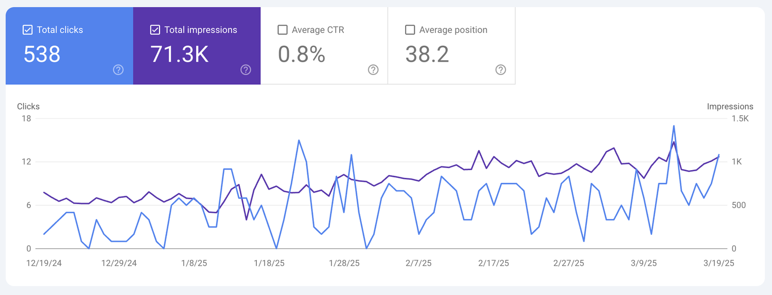 I was tasked (as a freelancer) with creating SEO-friendly copy for Fortify’s new website. The project was a great success, with the new content performing very well across organic search, with most pages generating strong impressions and clicks.